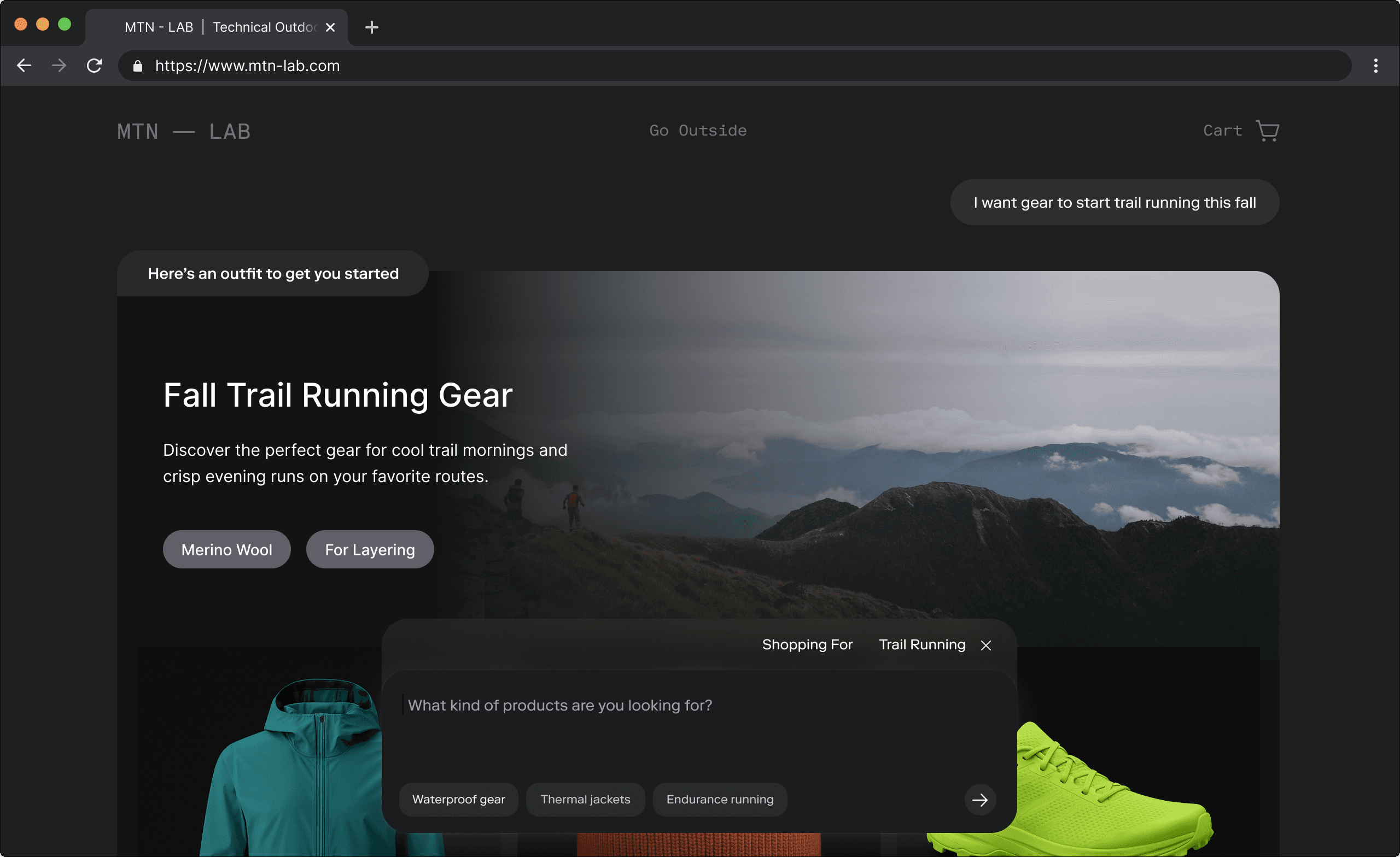 Our conversational storefront augments your website with a natural-language shopping experience, built for how customers now search and buy.